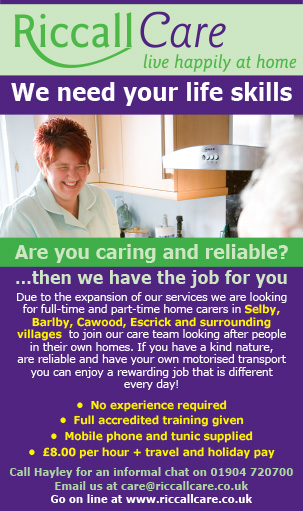 Part of the ongoing initiatives is a Riccall Care Community Link, a free home care advice drop-in session, branded as recognisably within the same family. This attracted local radio attention and promotion from Minster Radio.